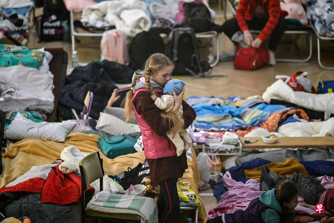 俄军入侵乌克兰至今,已有数百万乌克兰人越过边界躲避战火,大部分到邻国波兰避难。在毗邻边界的波兰东南部城市普热梅希尔(Przemysl),当地的学校被辟为临时收容所,让难民栖身。所内设备简陋,一名女孩抱着弟弟哄他睡觉。联合国说,乌克兰难民人数已经接近270万人。(法新社)