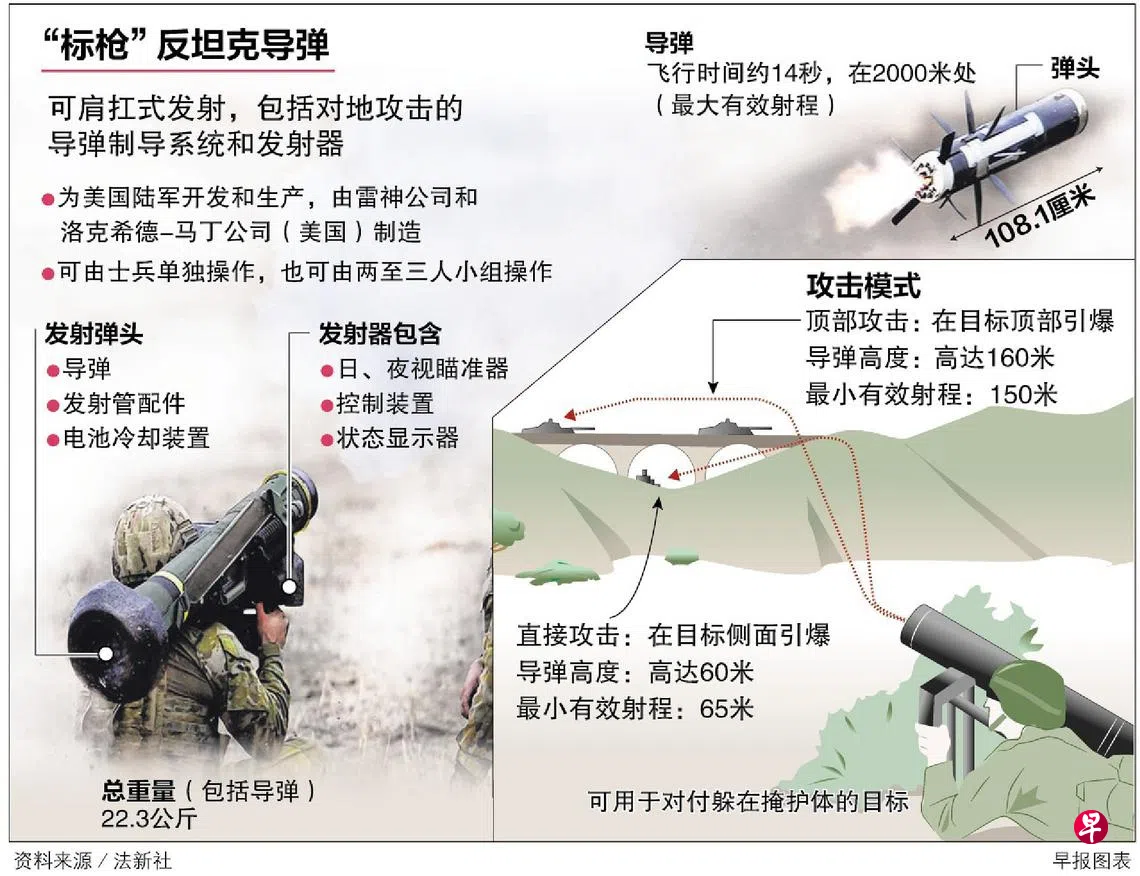 为了避免与俄军发生正面冲突,西方国家向乌军提供大量他们认为可以震慑或挫败俄罗斯入侵的武器,其中包括美国制造的FGM-148“标枪”反坦克导弹。