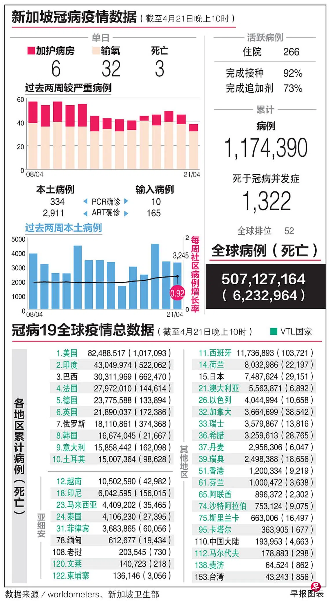 冠病19全球疫情总数据(21/4)