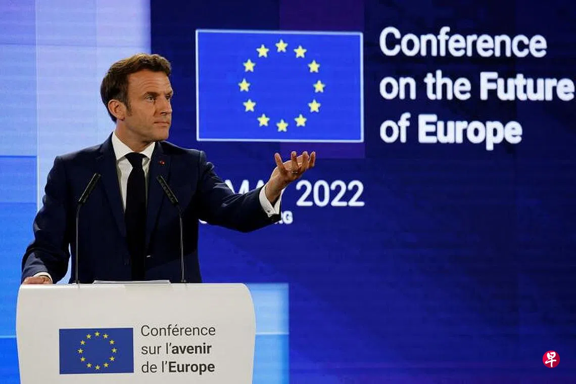 5月9日是“欧洲日”,为期一年的欧洲未来论坛在法国斯特拉斯堡的欧洲议会上举行闭幕式,马克龙以欧盟轮值主席国元首的身份致辞。
