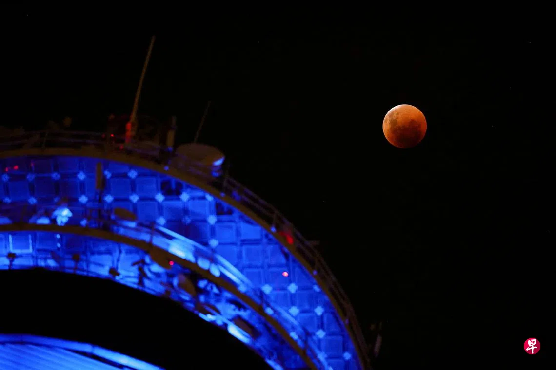美欧、南美洲及非洲地区星期天晚上出现月全食或“超级血月”现象,蔚为奇观。在月全食期间,光线经地球大气层折射之后,月球便会呈现血红色。由于这次月球运行到与地球最近距离,月球看上去会比平常大,因此可称为“超级血月”。美国宇航局说,当月球、地球和太阳排成一条直线,月球穿过地球的阴影时,就会发生月食;当月球穿过地球阴影最黑暗的部分(称为本影)时,这种天文现象被称为月全食。上图为南美洲智利首都圣地亚哥上空出现的“血月”美景,下图为墨西哥城上空拍摄的月食连环照片。(路透社)