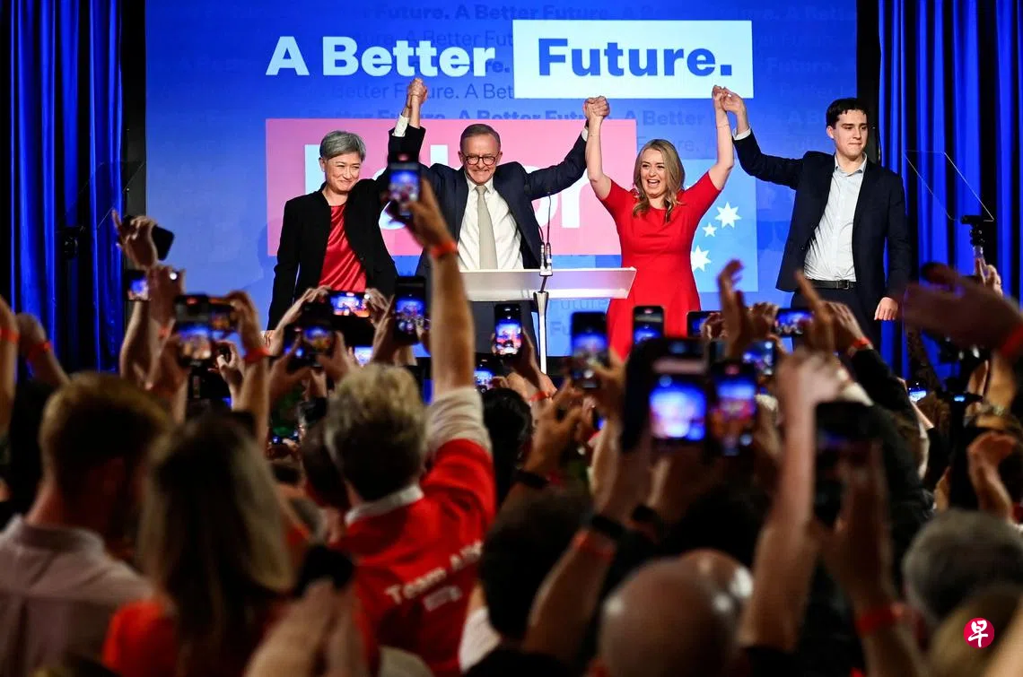 (悉尼综合电)澳大利亚总理莫里森领导的执政联盟在昨天的联邦议会选举中,败给反对党工党。工党党魁阿尔巴尼斯肯定成为下一任总理,预料他领导的政府将在应对气候变化方面采取更积极的政策。这是工党2013年以来首次执政。