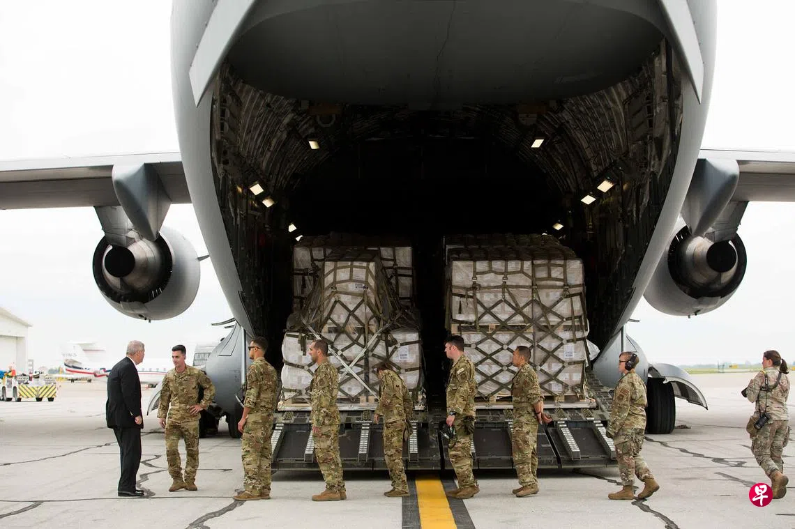 美国近几个月出现配方奶粉短缺情况,在抢购潮之下,很多药房和超市的货架都空空如也。冠病疫情引发的供应链危机,加上早前因有两名婴儿怀疑进食雅培受细菌污染的奶粉,雅培暂时关闭密歇根州工厂,并回收部分奶粉,导致全美奶粉供应紧张。即使有部分家长买到奶粉,价格也较平时倍涨。美国总统拜登上周签署行政命令,批准使用军机加快从海外运送奶粉,以纾缓国内“奶粉荒”。图为首批从瑞士苏黎世运回的奶粉抵达印弟安纳波里斯市国际机场。(彭博社)