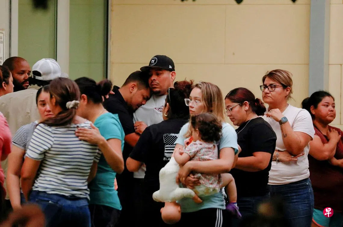 罗布小学发生枪击事件后,学生被转移到社区中心。忧心忡忡的家长在等候消息时,难掩震惊与悲痛。(路透社)
