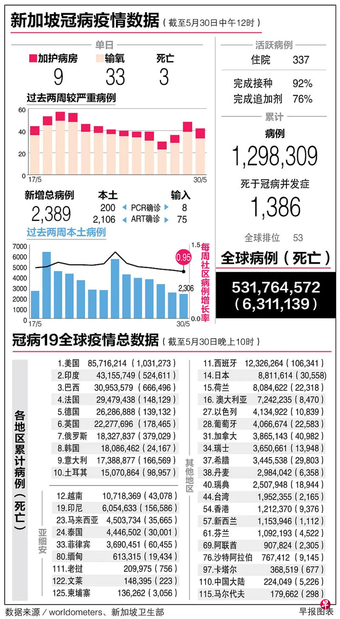 冠病19全球疫情总数据(30/5)