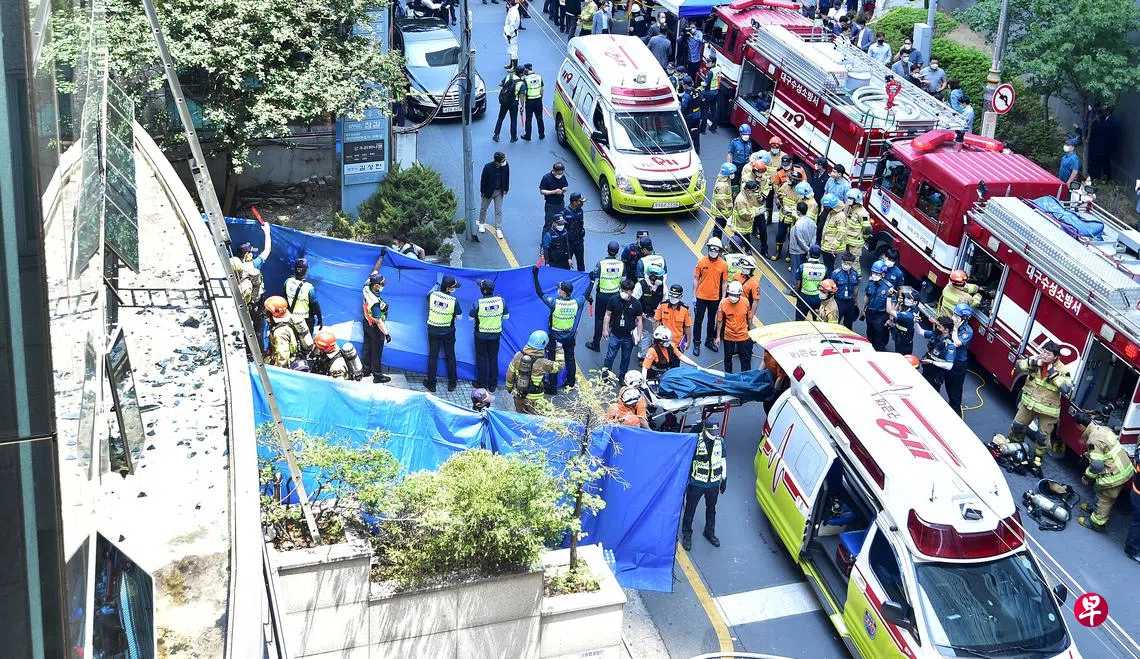 韩联社报道,起火大楼位于大邱市寿城区,毗邻大邱地方法院,楼高七层,大楼内有不少律师事务所。火灾发生在当天早上10时55分左右(新加坡时间9时55分),事发时律师楼的第二楼冒出黑烟并传出爆炸声。
