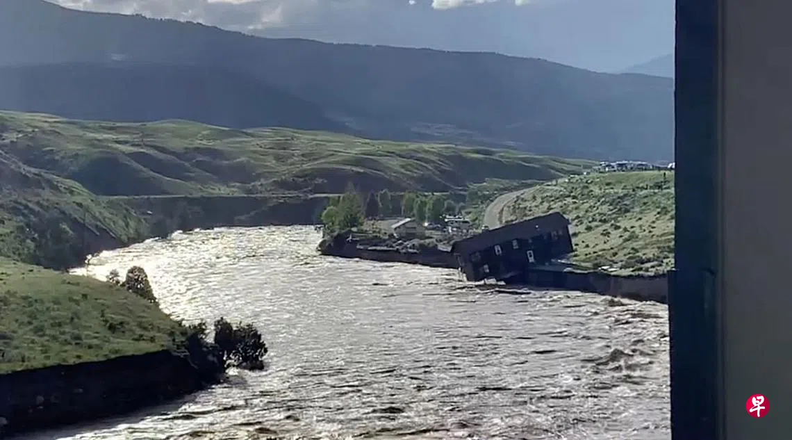 美国正值夏季旅游旺季,但受极端天气引发的洪灾和山体滑坡影响,横跨怀俄明、蒙大拿和爱达荷州部分地区的著名旅游胜地黄石国家公园周一起罕见地关闭全部五个入口处,使当地高度依赖旅游业的社区大受影响。图为视频截图显示,黄石公园一条河流泛滥成灾,冲毁道路和房子。(路透社)