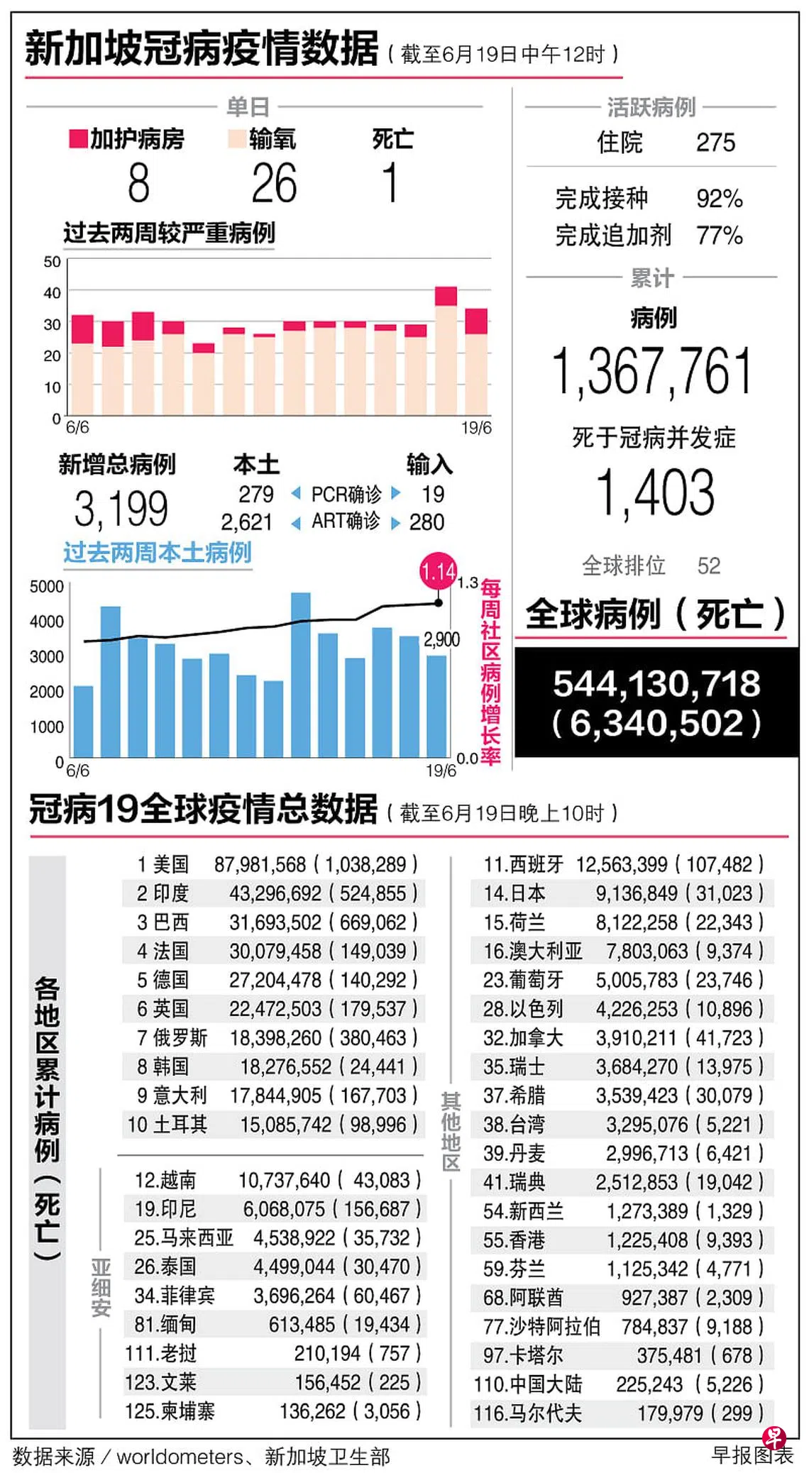 冠病19全球疫情总数据(19/6)