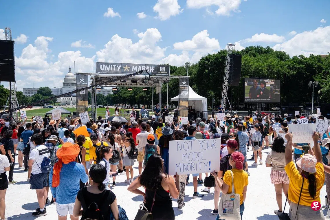 (华盛顿综合电)美国亚裔人士周六在首都华盛顿市国家广场举行集会,呼吁停止针对亚裔的仇恨及暴力行为。