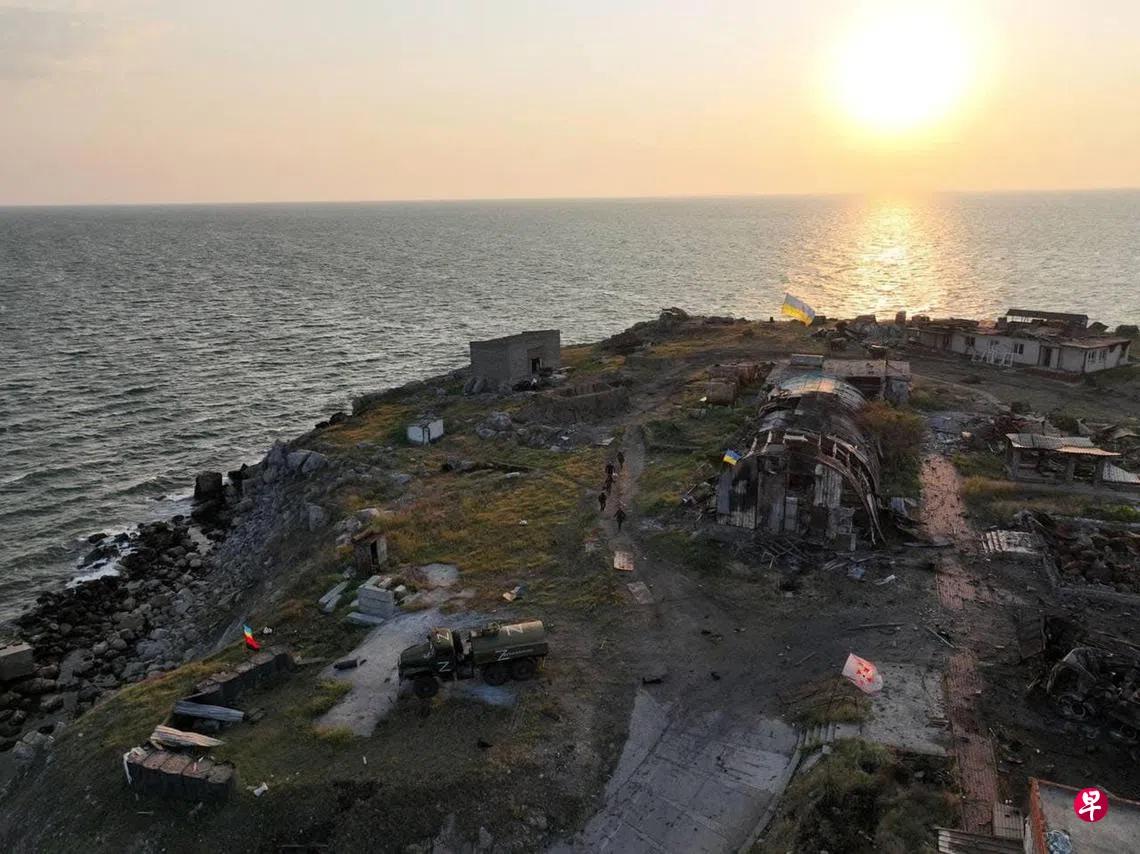 俄罗斯军队6月30日撤出位于黑海的乌克兰蛇岛后,乌克兰国旗重新在蛇岛升起。乌克兰总统办公室主任叶尔马克周四(7月7日)在社交媒体发布视频显示,三名士兵在岛上升起一面巨大的乌克兰国旗。他说,未来几个月,乌克兰国旗还会陆续在更多暂被占领的城市再次飘扬。不过乌克兰国旗在蛇岛重新升起不久,俄国防部就发布消息声称俄战机对蛇岛发动导弹袭击,打死数目不明的乌士兵。(路透社)