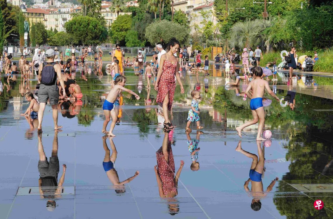 欧洲面临第二波热浪来袭,西班牙和葡萄牙部分地区的气温超过40摄氏度,预计未来几天,法国和英国也将出现高温。周三(7月13日),酷热天气使西班牙、葡萄牙和法国多个地区发生林火,当局出动数以千计消防员与大火搏斗,当地居民形容情景有如“世界末日”。法国气象局说,这波热浪威力应会在7月16日至19日达到颠峰。法国已有七个省处于高温橙色预警状态,另有数十个省处于黄色预警状态。图为人们在法国尼斯一处喷泉消暑。(新华社)