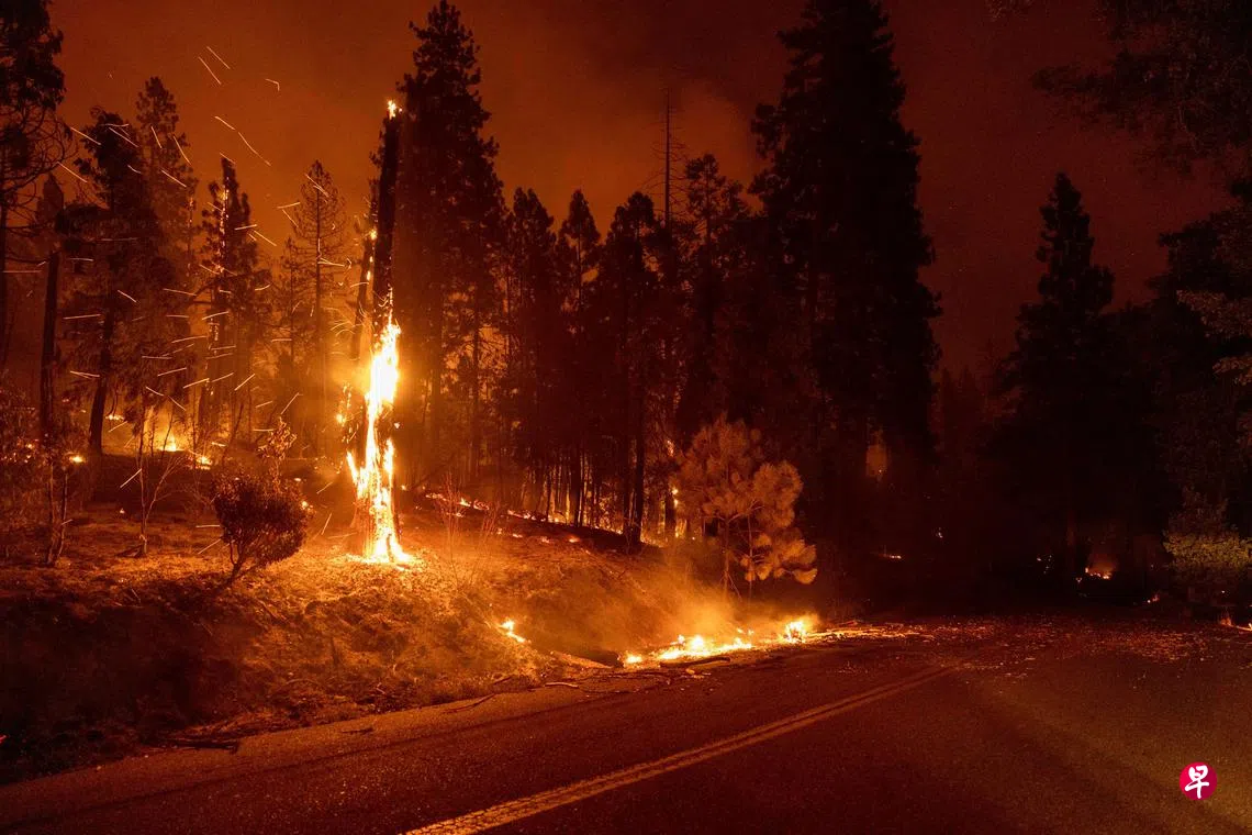 由高温引发的山火仍在加州马里波萨县(Mariposa)加速燃烧,附近优胜美地国家公园山火也已持续燃烧超过三天,这是加州今年发生的最严重山火。