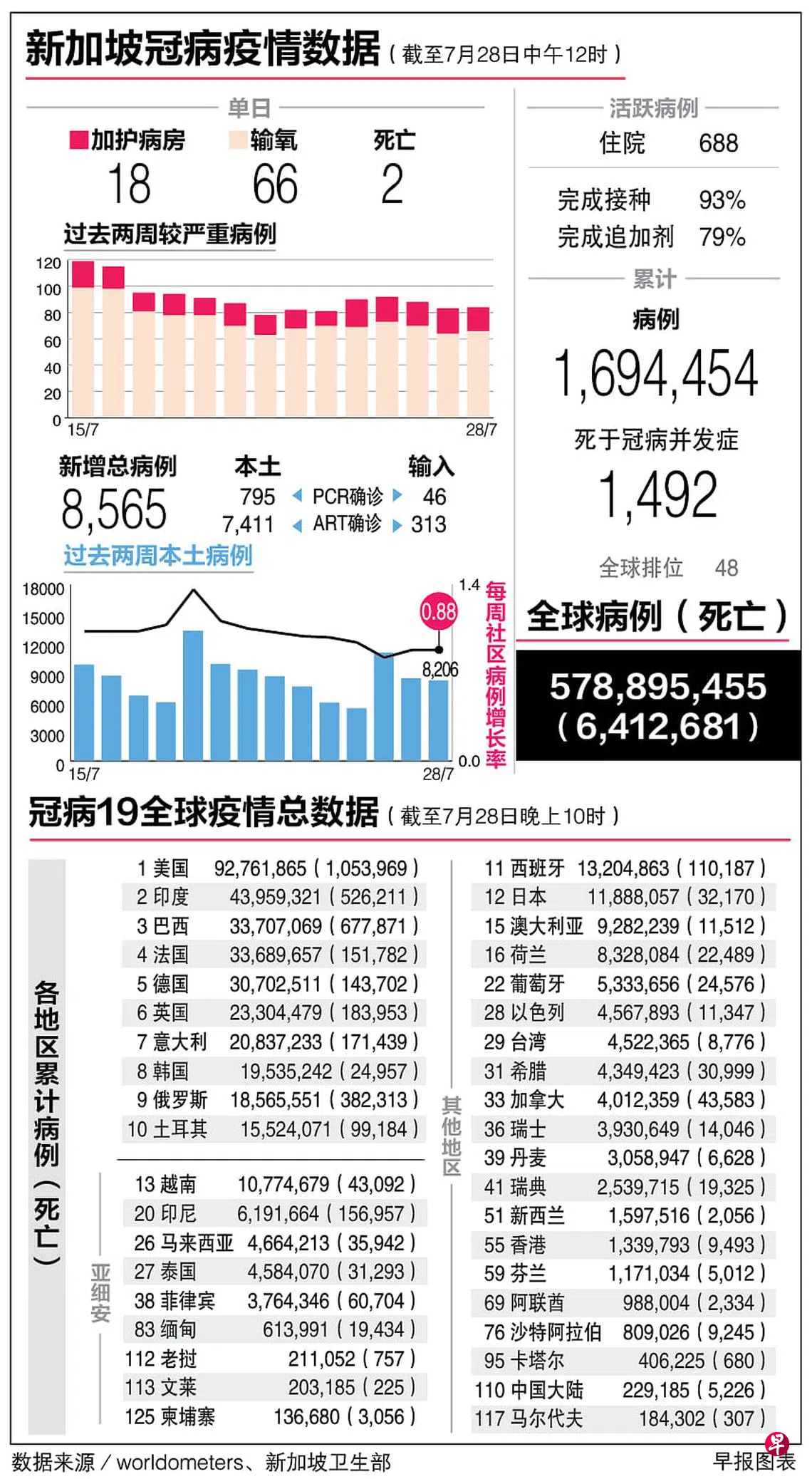 冠病19全球疫情总数据(28/7)