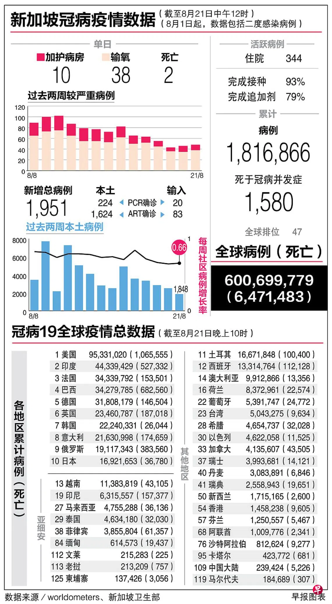 冠病19全球疫情总数据(21/8)