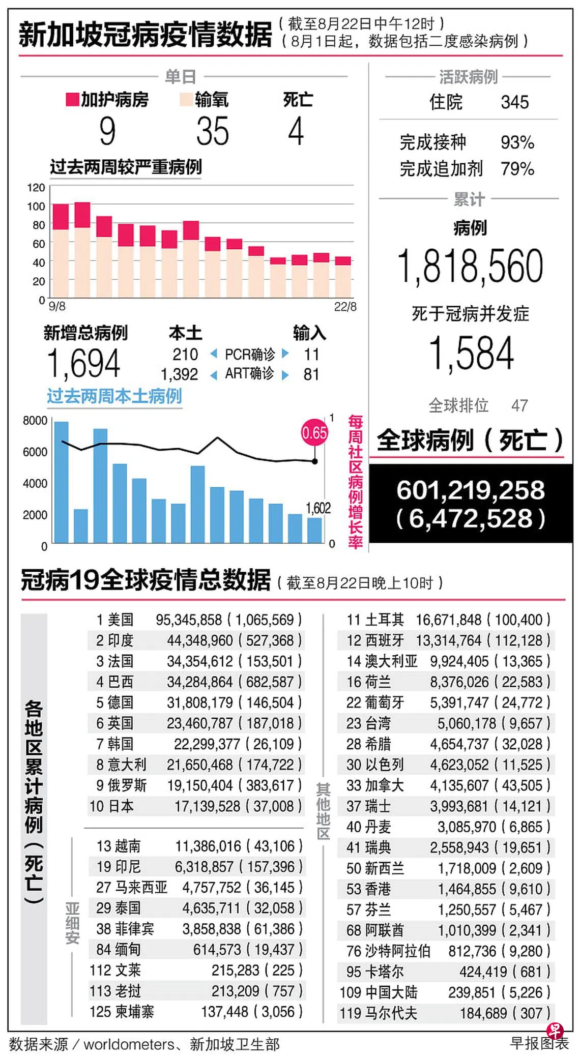 冠病19全球疫情总数据(22/8)