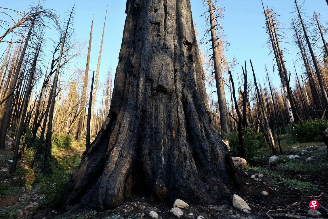 然而,受气候变化影响,这些古树越来越难以抵抗生态环境的变化。美国国家森林局的数据显示,过去两年里,有近20%的红杉树在干旱天气引发的森林大火中烧毁。森林局已着手减少未燃烧的红杉林附近的燃料,以降低起火风险。(法新社)