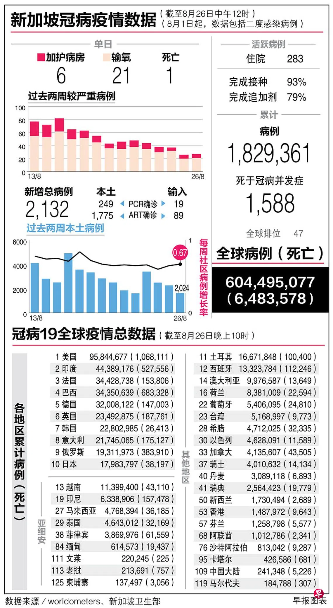 冠病19全球疫情总数据(26/8)