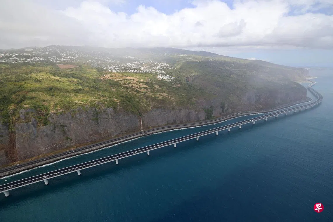 位于印度洋的法属留尼旺岛星期天(8月28日)启用新海岸公路的部分路段,不少人迫不及待试用这条连接岛上两大城市圣但尼(Saint-Denis)和拉波塞雄(La Possession)的公路。公路全长12.5公里,其中5.4公里的高架桥就建在海上,高出海面30米,宛如水上游龙。它在2014年动工,全部工程2030年后才竣工,总成本将超过22亿欧元(约30.6亿新元),是法国最昂贵的道路工程。