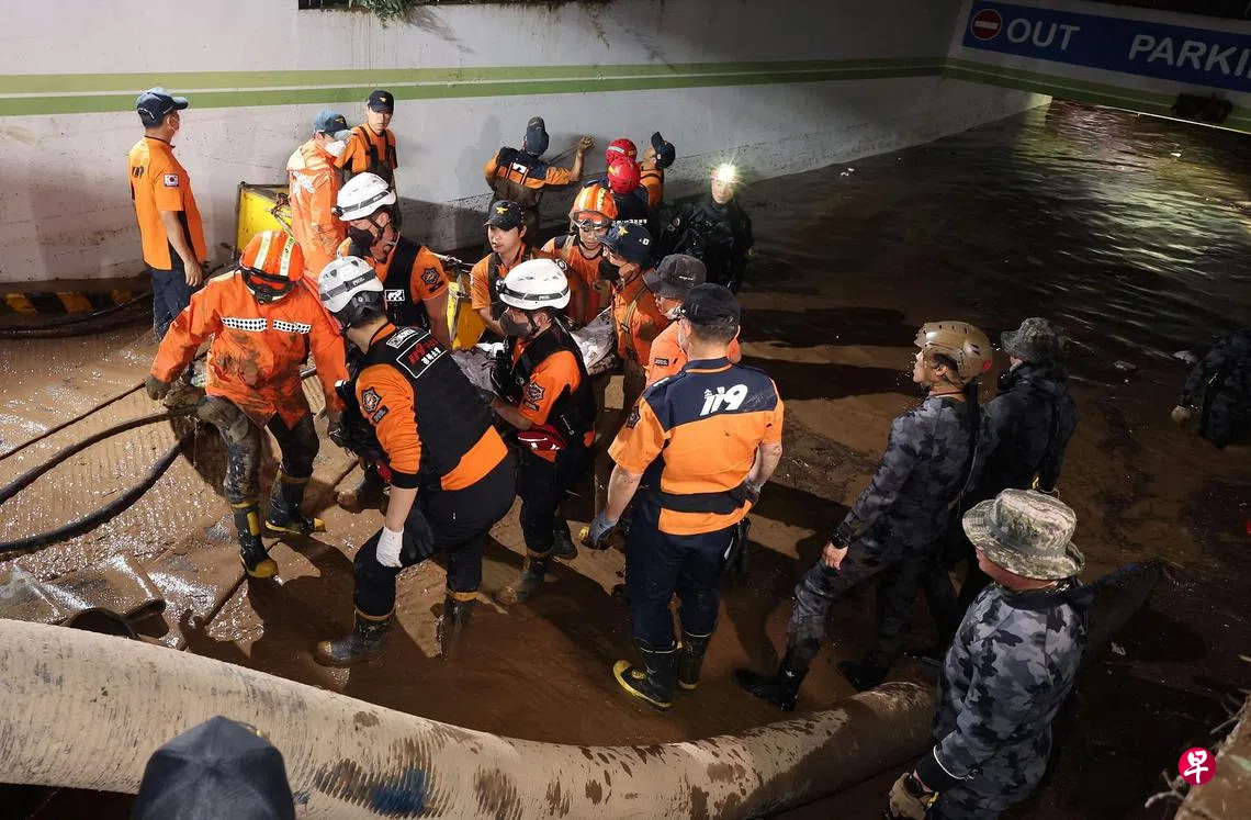 庆尚北道浦项市星期二遭遇每小时100毫米的强降雨,当地一座公寓地下停车场进水导致七人死亡。