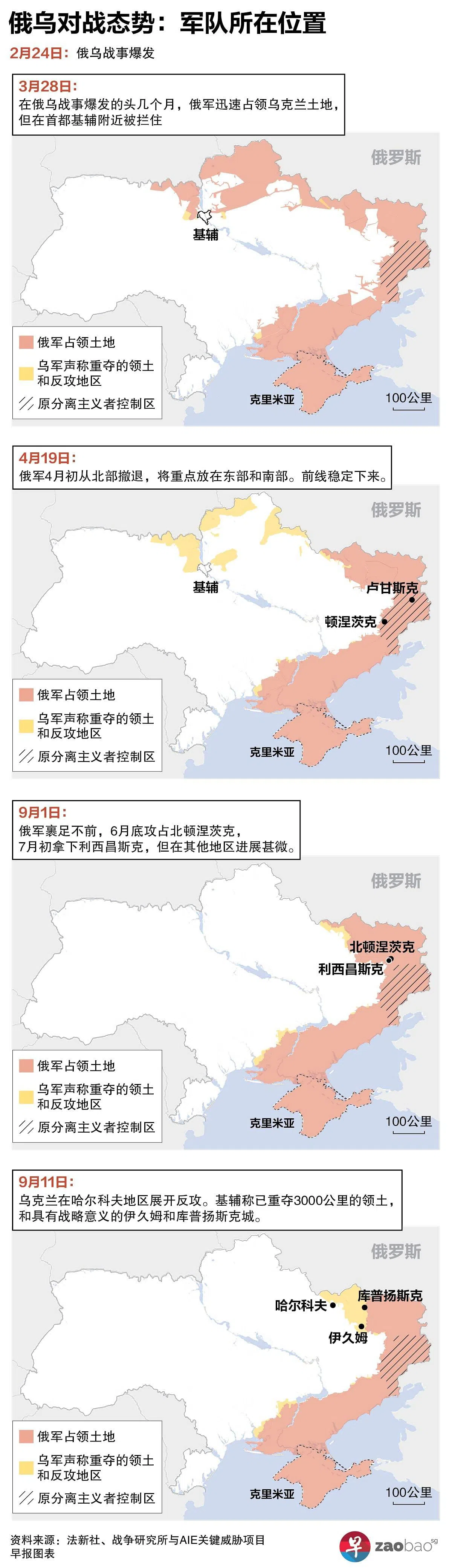 乌克兰总统泽连斯基9月12日说:“从9月初至今,我们的士兵已经解放了乌克兰南部和东部6000多平方公里的领土,并还在继续前进。”