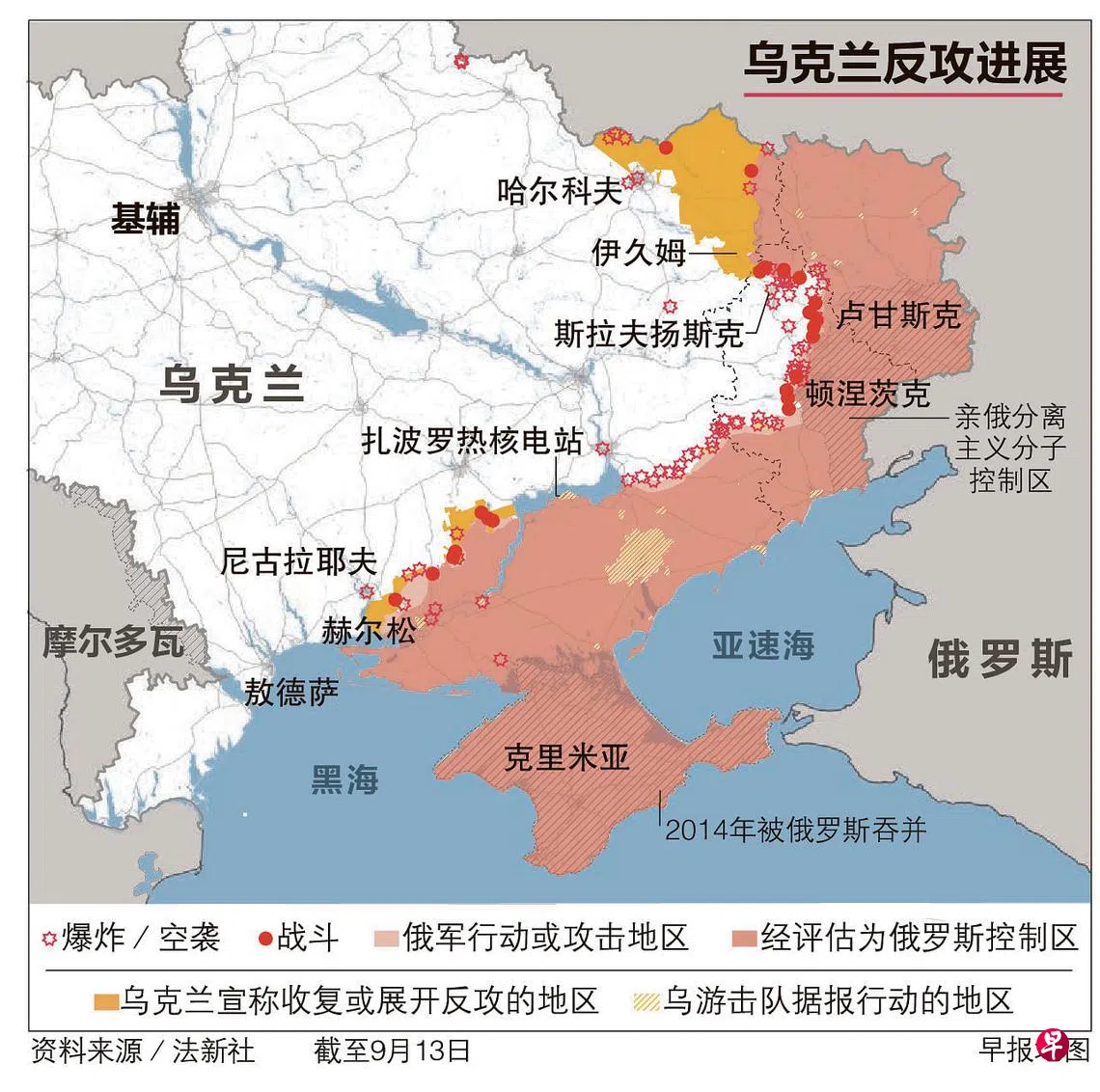 (基辅综合电)乌克兰总统泽连斯基说,乌军已从俄军手中夺回约6000平方公里领土,他呼吁西方国家加快提供武器,协助乌军巩固对所收复领土的控制。西方军事观察员认为,乌军反攻行动进展神速,至少打乱了俄总统普京夺取整个乌东顿巴斯地区的目标,甚至使俄军最终落败成了可能。