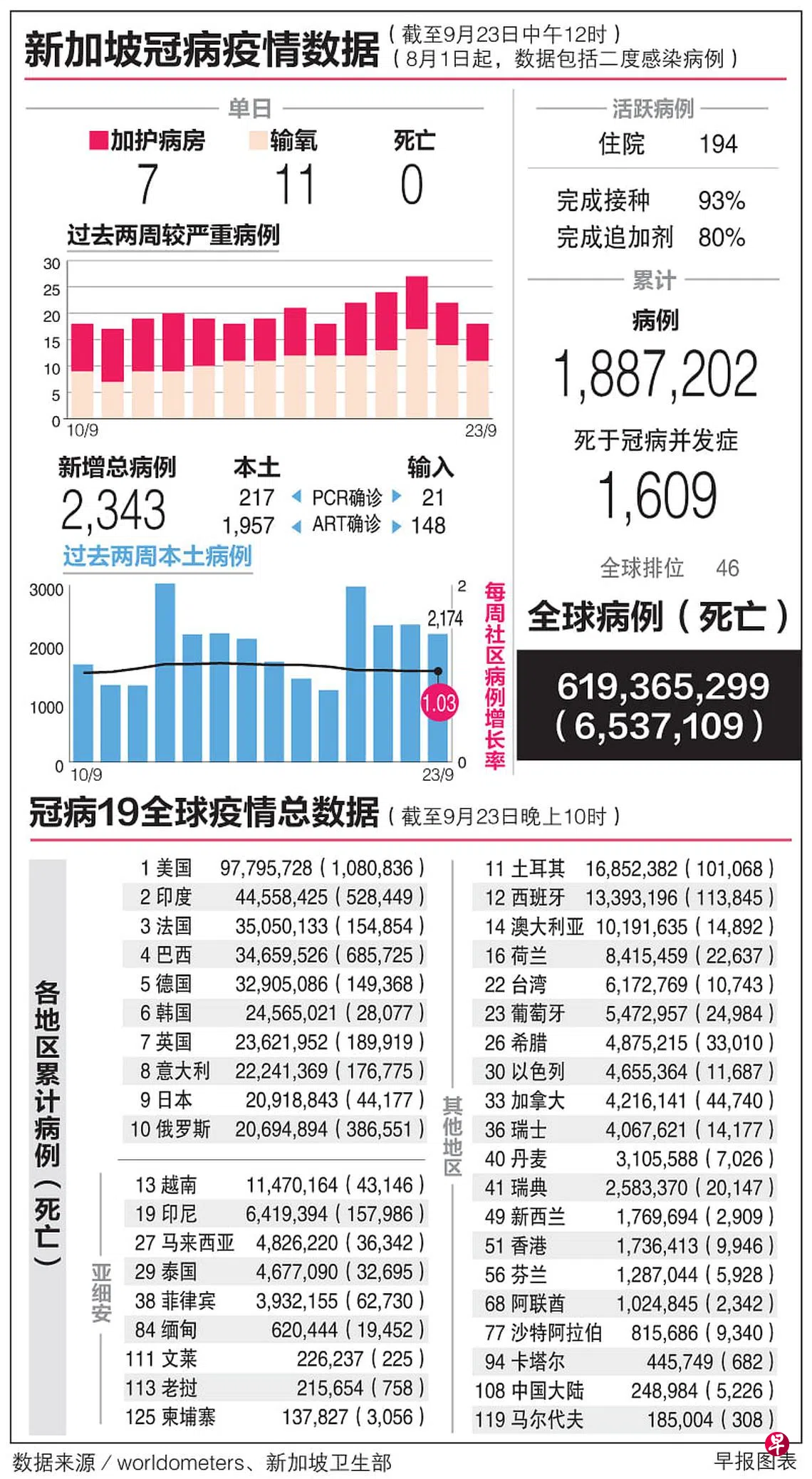冠病19全球疫情总数据 (23/9)