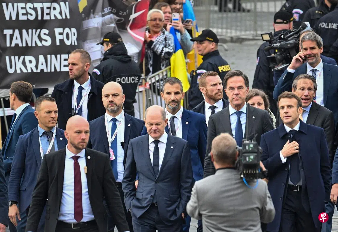 另一方面,峰会还包含在俄罗斯面前体现欧洲国家大团结的精神。乌克兰总统泽连斯基通过视频演讲促请欧洲国家增加武器供应和提供安全保障,称欧洲领导人可通过援助乌克兰,成为和平的领袖。