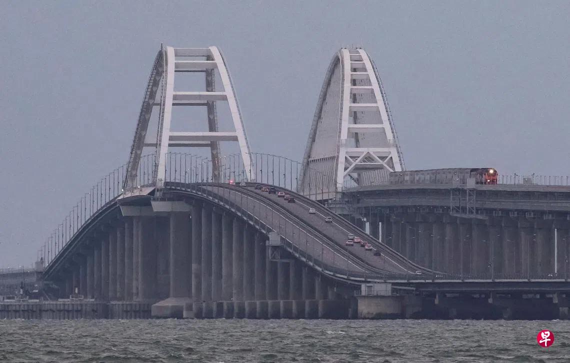 18公里长的克里米亚大桥也称刻赤海峡大桥,是一条铁路和公路两用桥。星期六黎明时分,大桥公路桥上一辆卡车发生爆炸,导致与公路桥并行的铁路桥上一货运列车的七个油罐着火。公路桥两节跨梁部分倒塌,目前只有一条车道可以通车。爆炸也造成三人死亡,爆炸原因还在调查中。