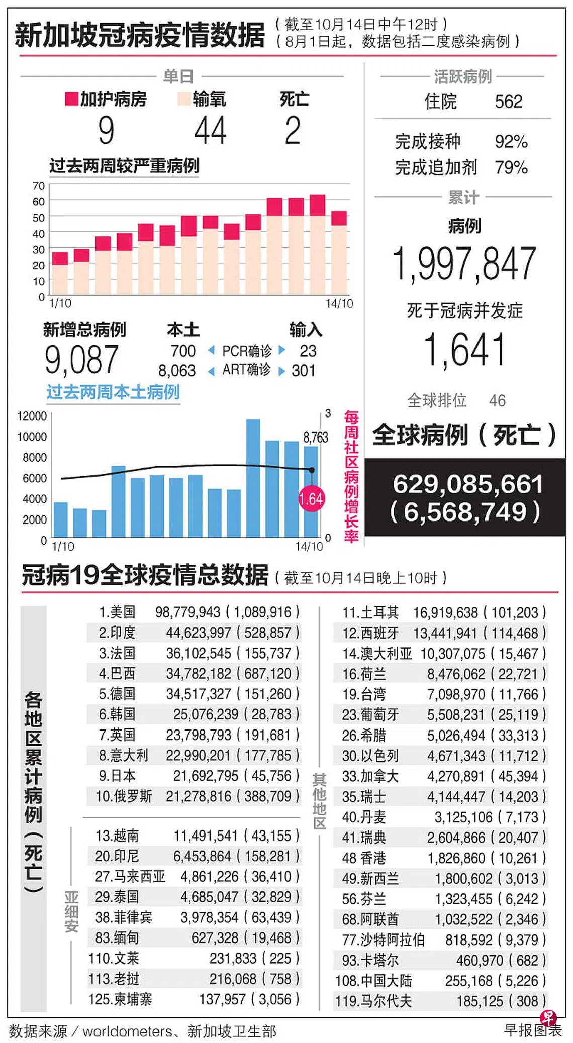 冠病19全球疫情总数据(14/10)