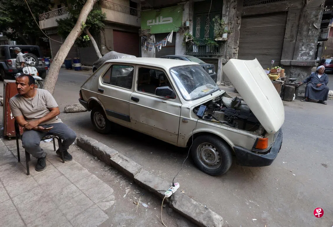 一名热爱旅游的51岁埃及教师阿里,因无力承担飙涨的燃料费,于是花费510美元(约727新元)购买一台1985年生产的菲亚特(Fiat)汽车,将其改造成电动车。如今,阿里仅须支付0.5美元,并通过街边电缆充电,就能让车行驶约96公里,极大降低了燃料成本。(路透社)