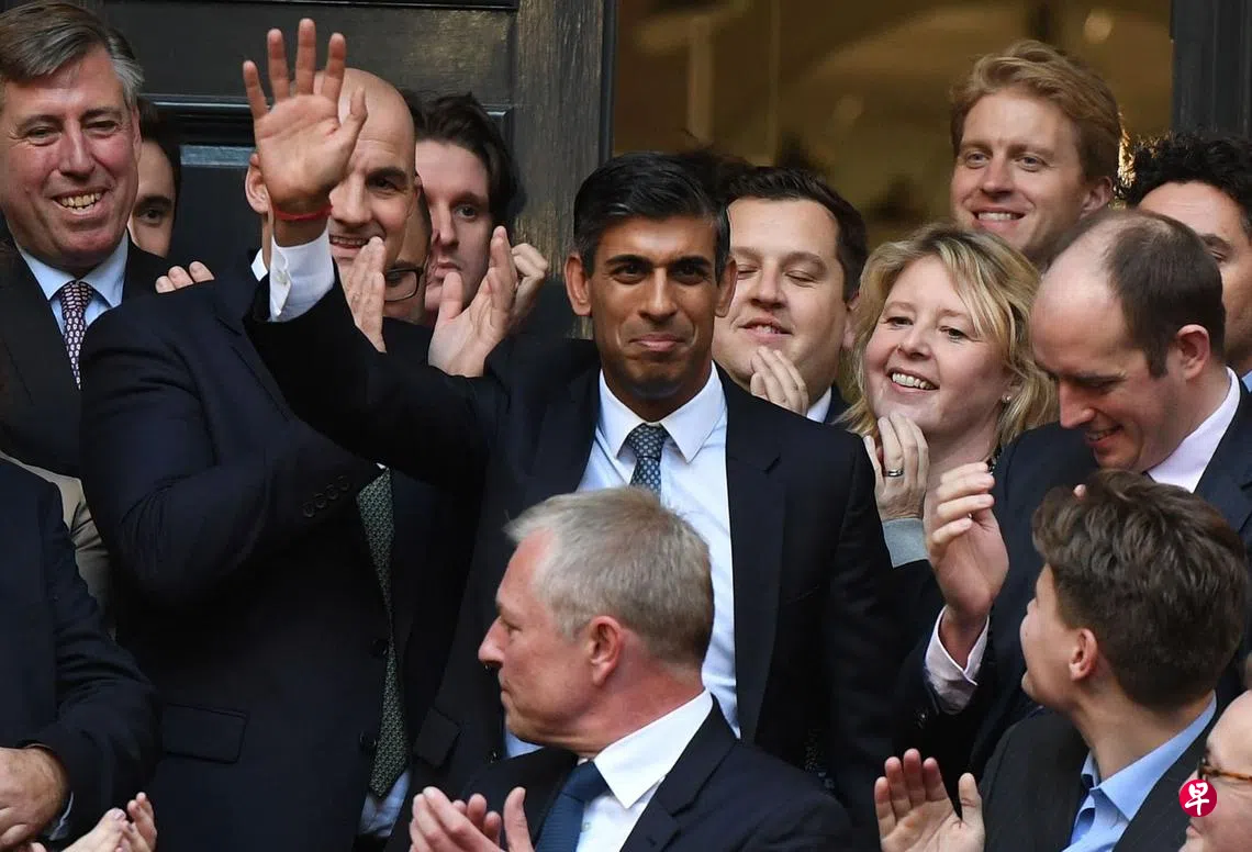 在伦敦当地时间星期一(10月24日)下午2时(新加坡时间昨晚9时)保守党党魁提名截止时,只有苏纳克(42岁)达到了候选门槛,他得到党内近200名议员的支持。在没有竞争对手情况下,他自动成为保守党新党魁。