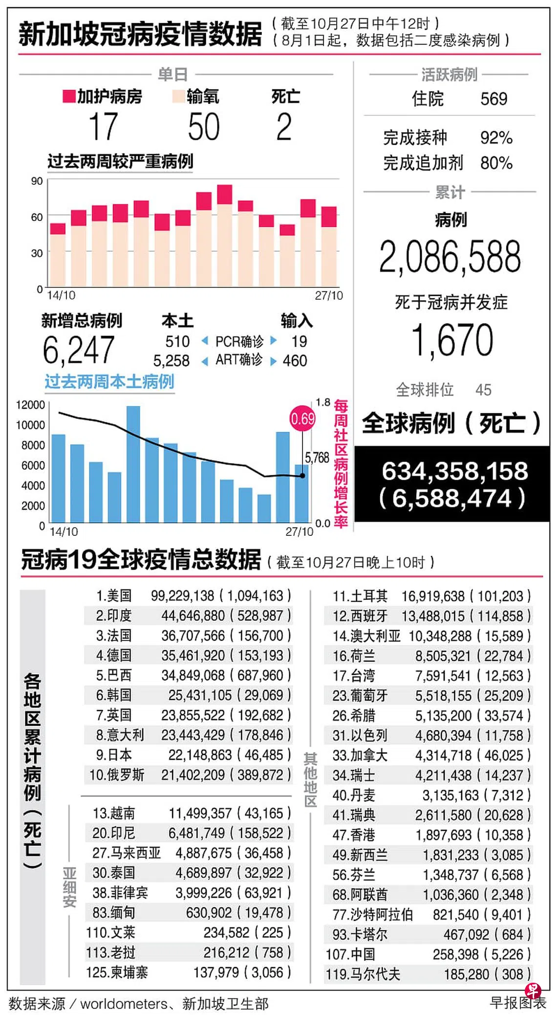 冠病19全球疫情总数据(27/10)