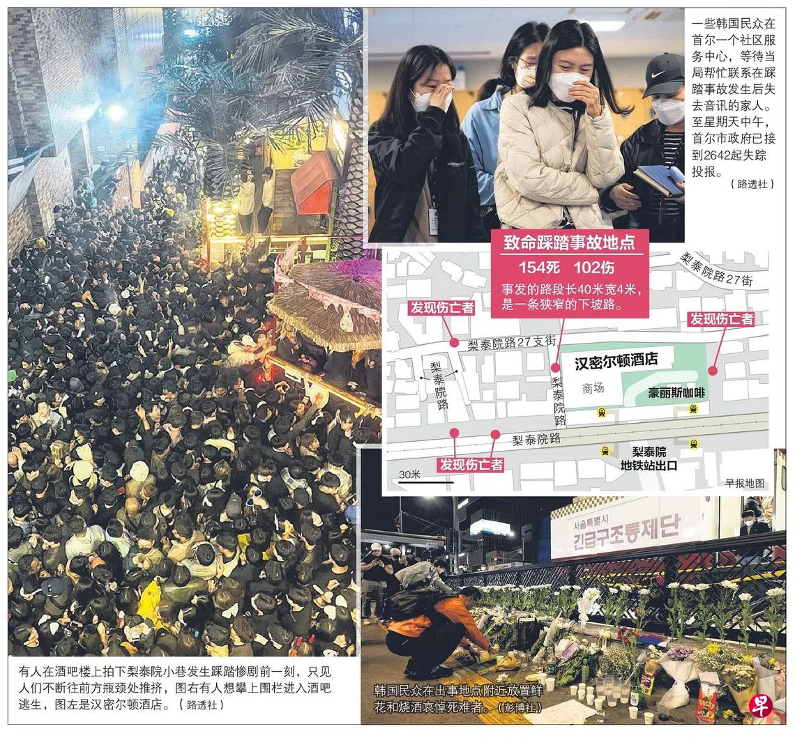 截至星期天中午,首尔市政府共接到2642起踩踏事件相关的失踪报告。