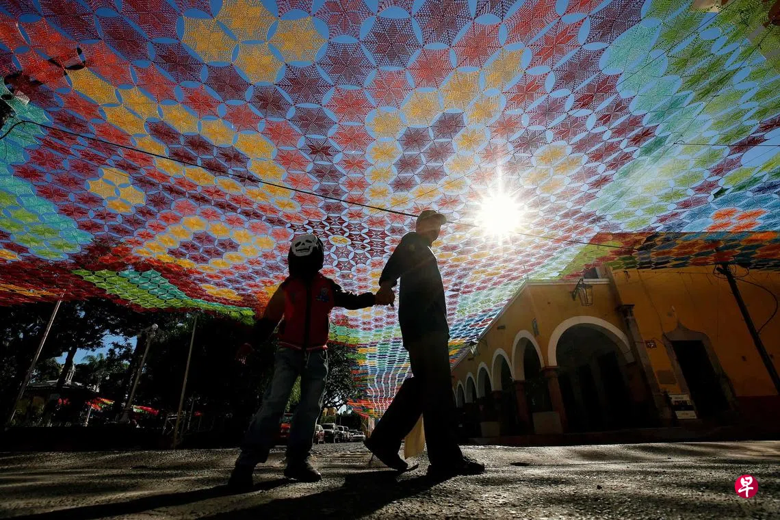 以彩色拉菲绳编织而成的天幕将墨西哥西部哈利斯科州小镇埃察特兰(Etzatlán)的街道映得五彩缤纷。这个名为“编织天空”(Woven Sky)的作品,更获健力士世界纪录认证为全球最大的纺织天幕。“编织天空”面积总计达1万4000平方米,由约200名工匠合作制成。据当地媒体介绍,“编织天空”的制作起源于2017年,当地一名妇女决定编织面料以敬奉神明,而后越来越多人参与,天幕也越做越大。“编织天空”是于今年较早时完成并正式推介。