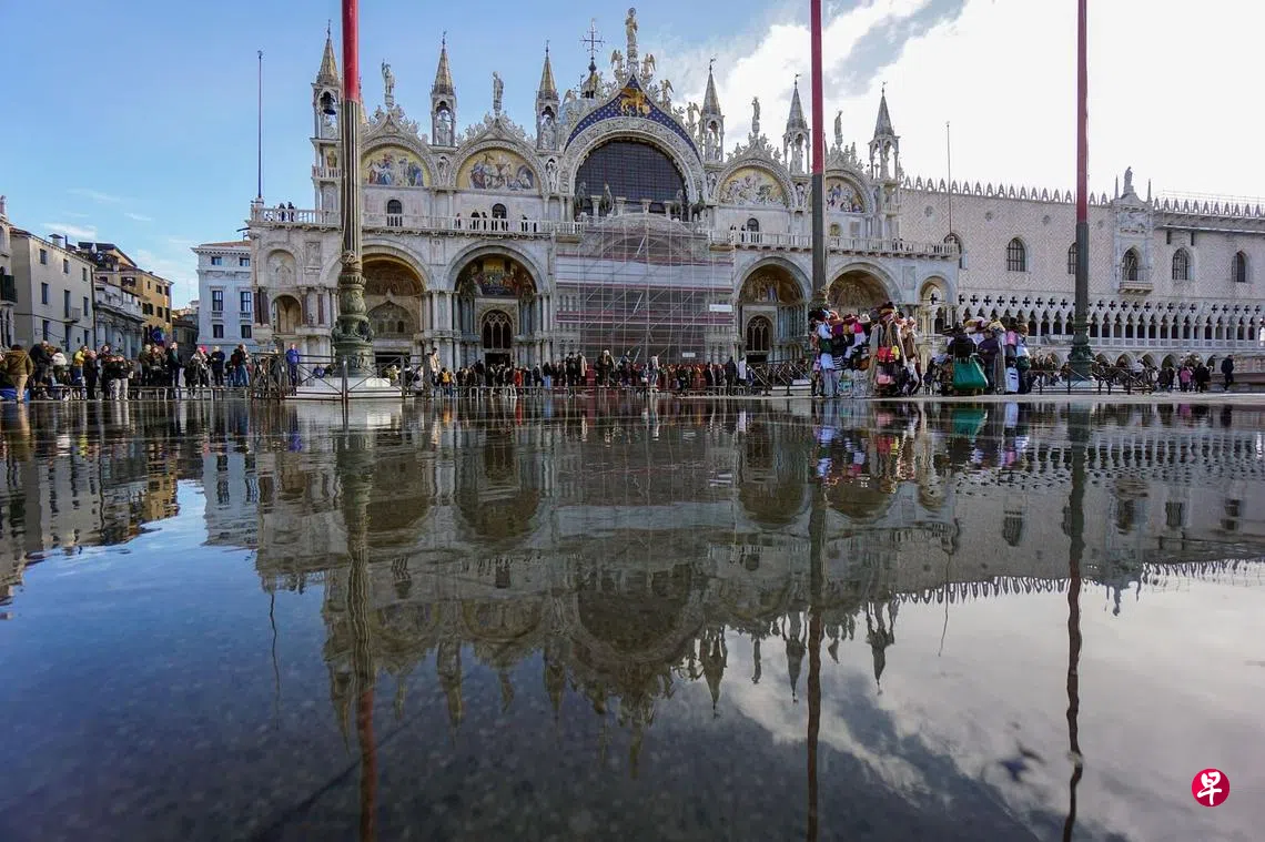 意大利水乡威尼斯最近又因涨潮引发洪水泛滥,导致到访圣马可广场的游客只能在高架木板道上行走以保持干爽。不过,威尼斯今年的水灾其实不算严重,上周意大利多地下起豪雨时,气象局预测威尼斯会受到170厘米高的潮水侵袭,那是接近历史纪录的水平。所幸,2020年启用的摩西防洪大坝系统发挥了作用,使威尼斯逃过了一场会将当地大片地区淹没的严重水灾。(彭博社)