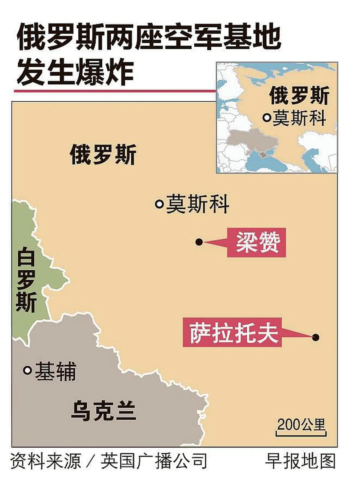 梁赞和恩格斯距离乌克兰都有数百公里。报道没有说明两起爆炸的原因,但有揣测认为这是乌克兰所为。克里姆林宫发言人佩斯科夫说,总统普京已听取有关爆炸的简报。