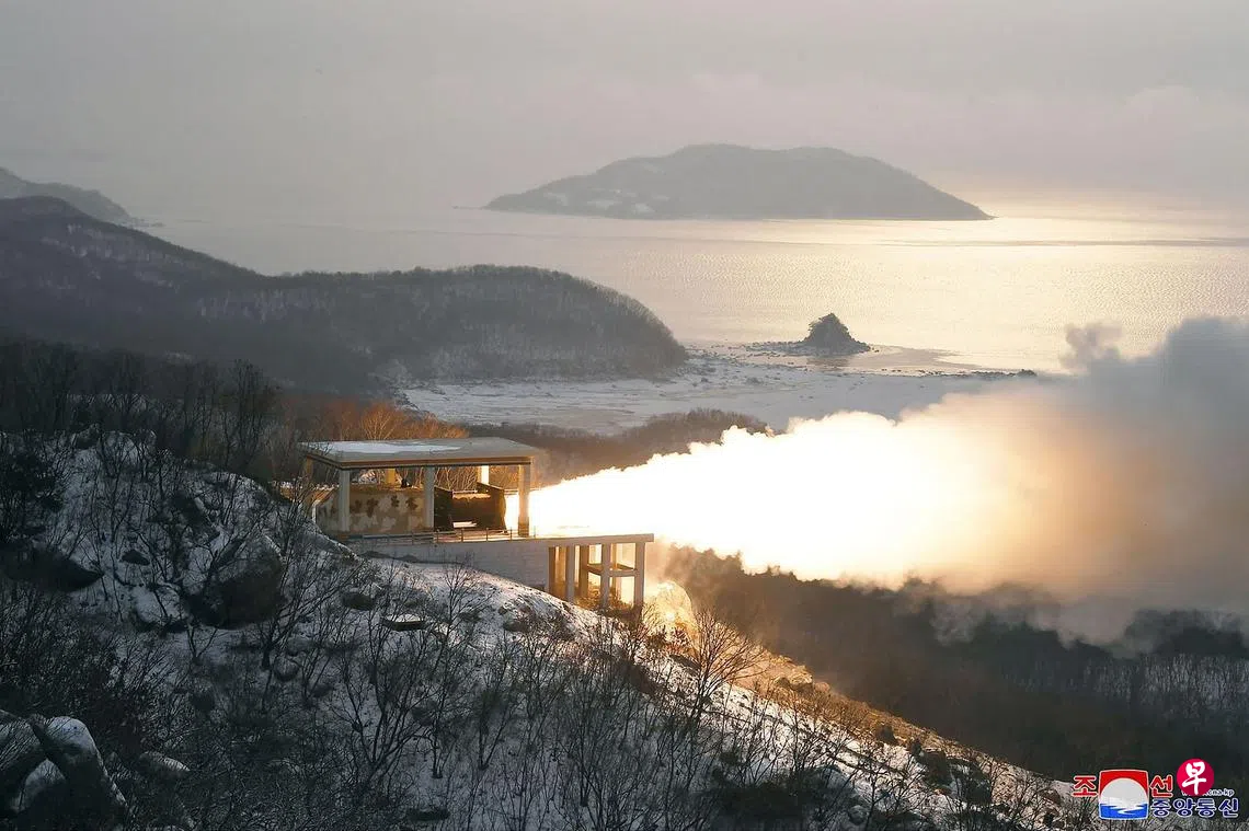 专家说,考虑到发动机的140吨推力,朝鲜这次试验似乎是要开发一种新型固体燃料洲际弹道导弹。