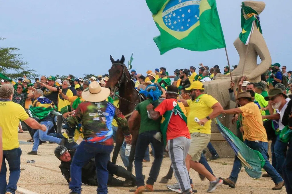 巴西前总统博索纳罗的大批支持者星期天(1月8日)冲破警察防线,闯入首都巴西利亚的国会大楼、总统府和最高法院,情况就像两年前美国败选总统特朗普的支持者冲击国会大厦。