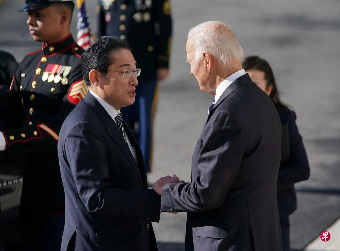 (华盛顿综合电)日本首相岸田文雄星期五(1月13日)在华盛顿同美国总统拜登会谈,讨论朝鲜核武器和弹道导弹计划、俄罗斯与乌克兰战争,以及如何维护台海和平与稳定。他们还将讨论安全问题和全球经济,包括在半导体等技术出口管制方面的合作。