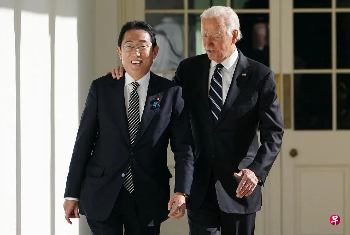 拜登星期五同到访的岸田会谈时指出,现在是美日联盟的一个“非凡时刻”,两国的关系从未像现在这样紧密。他也赞扬日本采纳新的国家安全战略,使国防开支以空前幅度扩大。