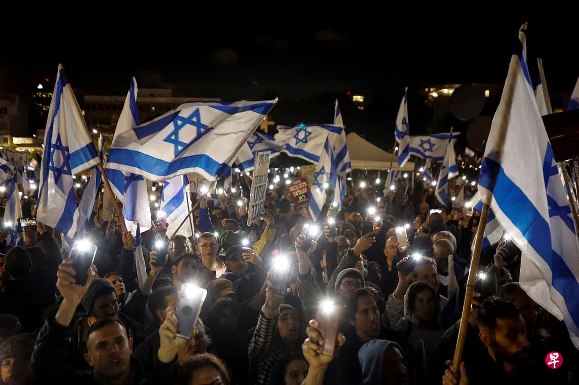 (特拉维夫综合电)以色列总理内坦亚胡领导新政府才不到一个月,三大城市出现大规模反对司法改革计划的示威,指内坦亚胡的改革计划破坏民主。