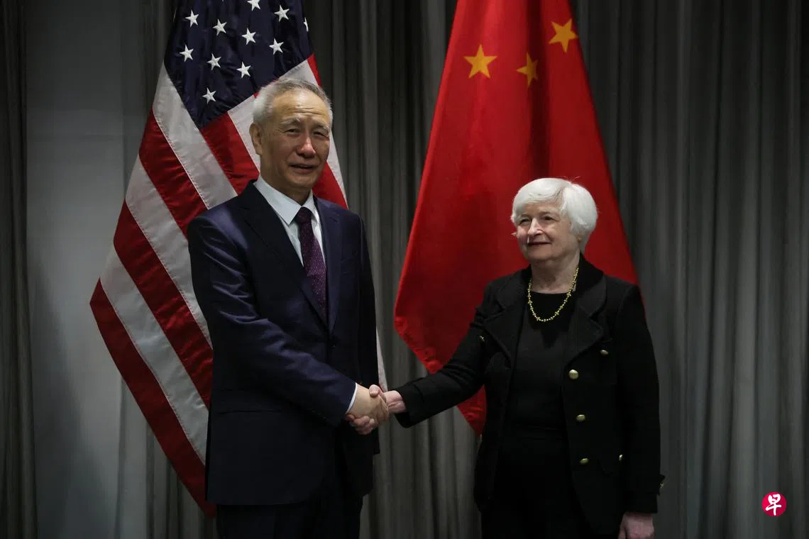 (华盛顿彭博电)中国国务院副总理刘鹤与美国财政部长耶伦首次面对面会晤时,把握短暂的茶歇时间,私下讨论了一些分歧。这一举动释放出中美要淡化紧张局势,同时突出两人会谈具建设性基调的信号。