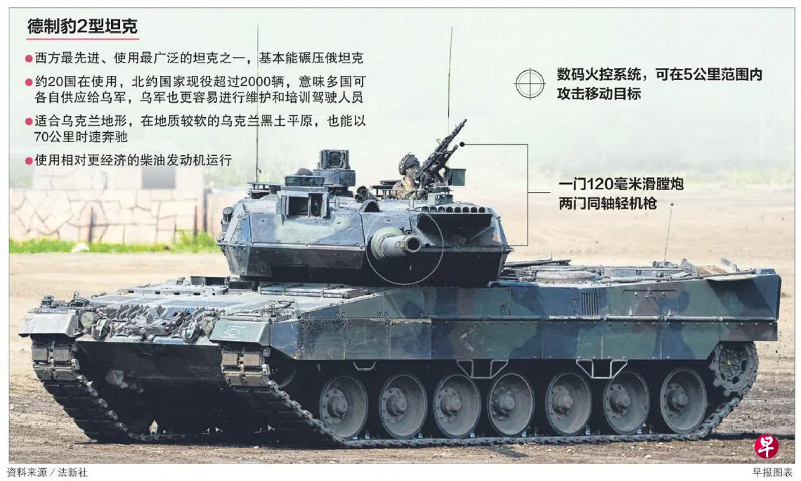 (柏林综合电)德国宣布将为乌克兰提供主战坦克,预料美国也将跟进。此举有可能提高乌军战力,协助它击退俄军,同时避免西方盟国出现分裂。莫斯科称这是“公然挑衅”。