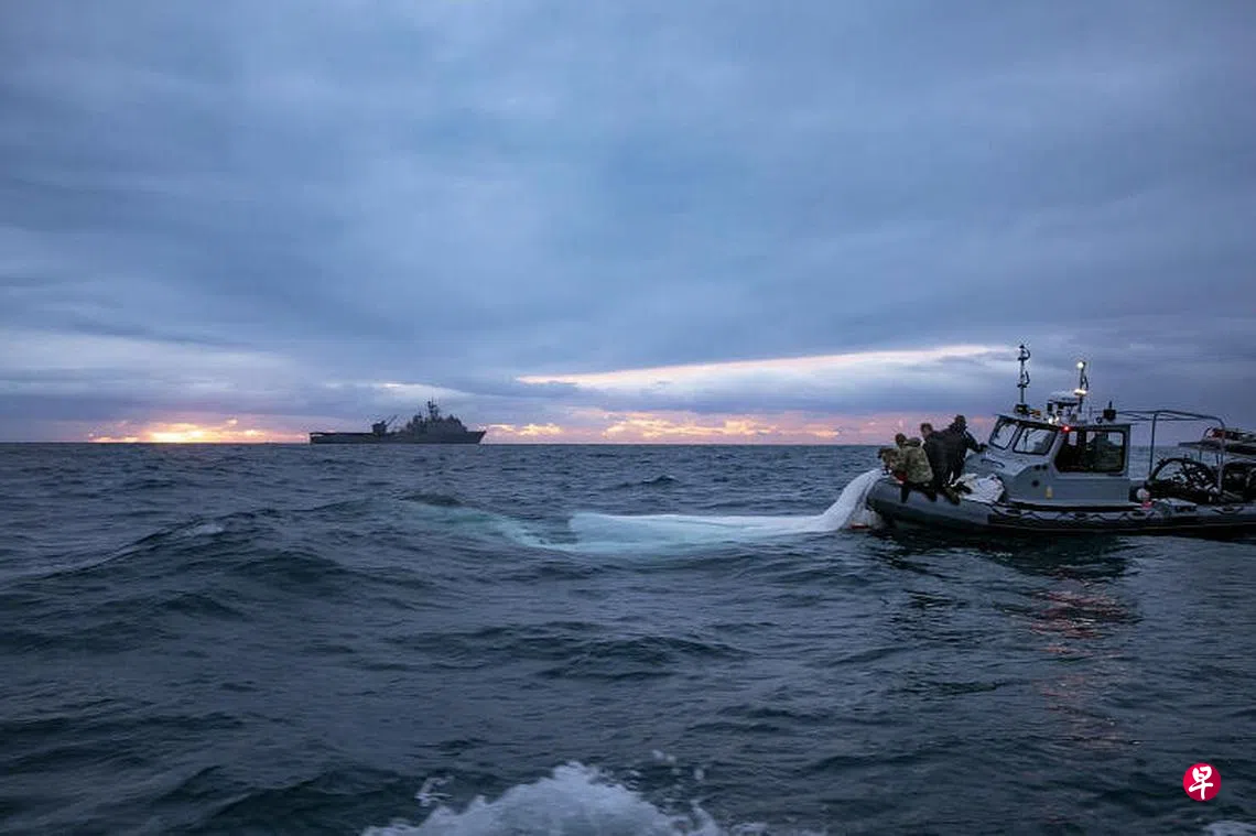 莱德说,海军还在打捞气球残骸,潜水员和爆破技术人员正在进行水下收集与调查。