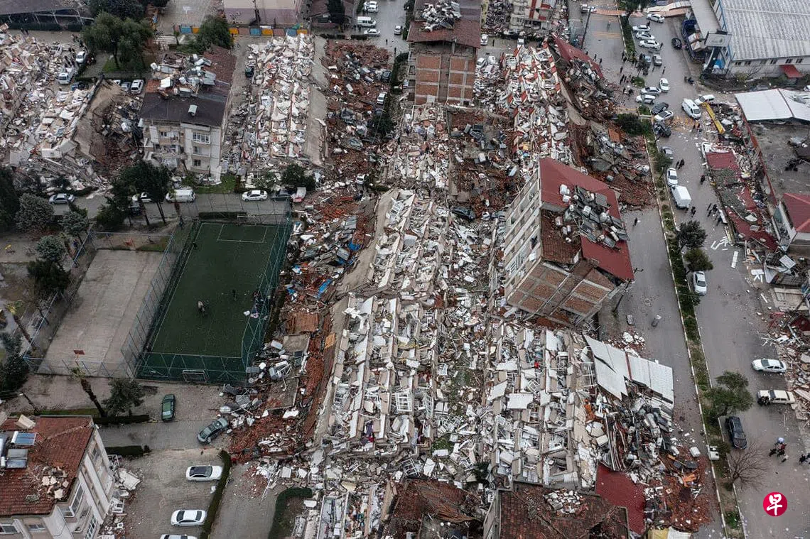 2月6日强烈地震,使土耳其东南部市区大楼如骨牌般应声倒下。(互联网)