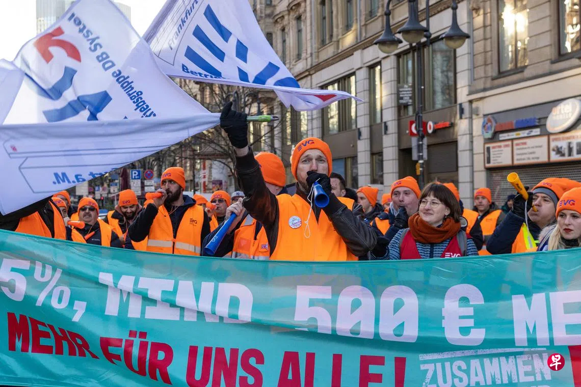 受俄乌冲突等因素影响,德国能源危机加剧通货膨胀压力,使公共部门员工实际工资明显缩水。为遏制罢工浪潮,劳资双方在星期一(3月27日)开启了第三轮谈判。但在上一轮谈判中,代表罢工员工的两大工会德国服务行业工会(Verdi)和运输联盟(EVG),分别要求加薪10.5%和12%,以应对通胀,却遭资方拒绝,进而发起新一轮大罢工。