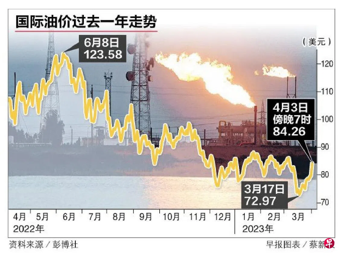 油价上涨可能进一步刺激持续居高的通胀,让包括美国联邦储备局在内的全球央行的抗通胀任务更复杂。美联储上月再度加息,下一次政策会议定5月举行。投资者原本多数预计美联储可能不会进一步加息,但冷不防油盟+宣布大减产,情况有了变化。