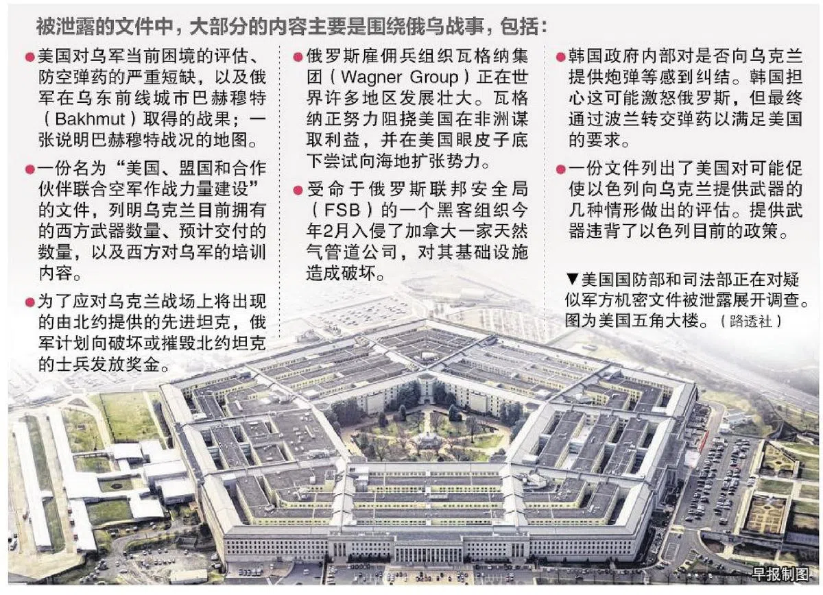 美国官员认为,外泄文件内容广泛,涵盖俄乌战事、中国、中东和非洲等,这显示文件是由美国人而非盟友泄露。