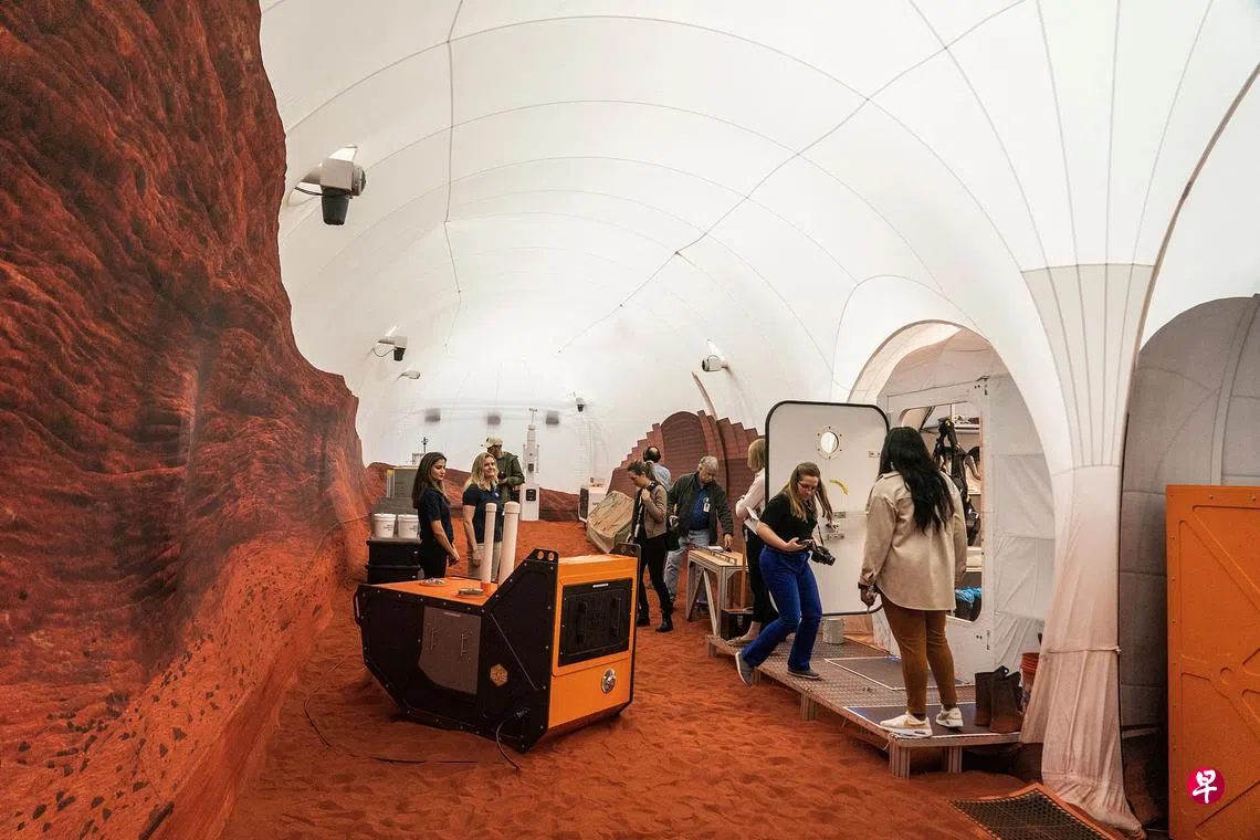 (休斯敦法新电)美国宇航局(NASA)公开模拟火星环境打造的住所,内有四个小房间、一个健身房和大量红沙,志愿者将在里面居住一年,让研究员了解人类在火星的生活情况,为将来航天员探索火星做准备。