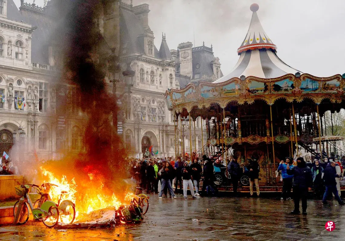 大批愤怒民众随即走上法国各城市的街头抗议,工会号召会员在劳动节参与大规模示威集会。